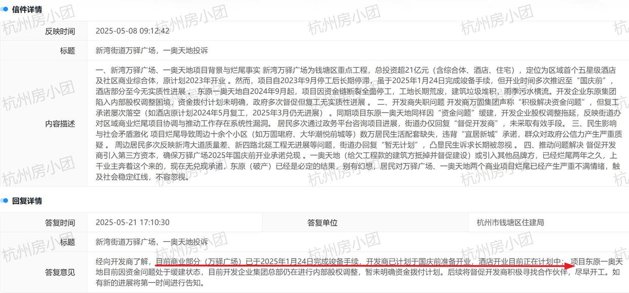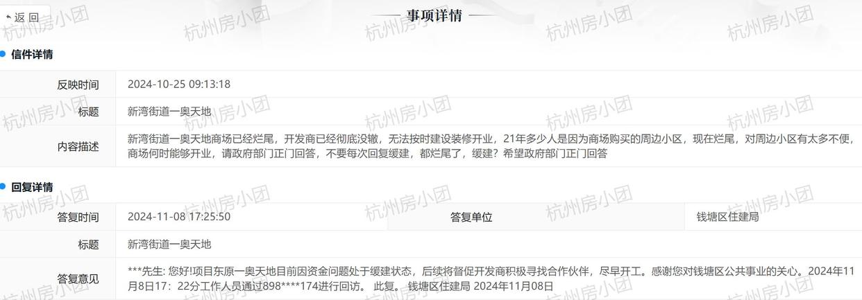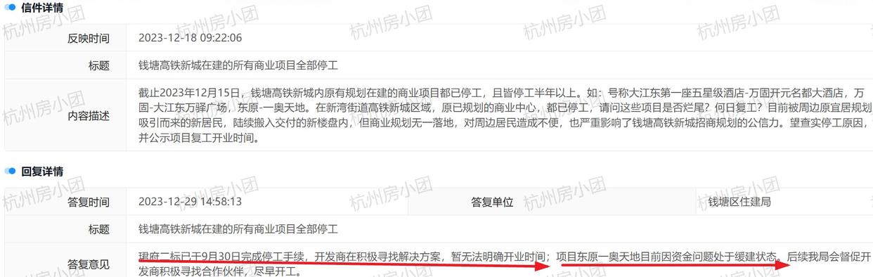 杭州钱塘区新湾街道一奥天地商业综合体项目近日再度引发关注。这个总投资24亿元的大型商业项目自2021年启动以来,一直被视为区域商业发展的重要引擎,如今却因资金问题陷入缓建状态。官方最新回应证实上上策,开发企业集团总部仍在进行内部股权调整,资金拨付计划尚未明确。