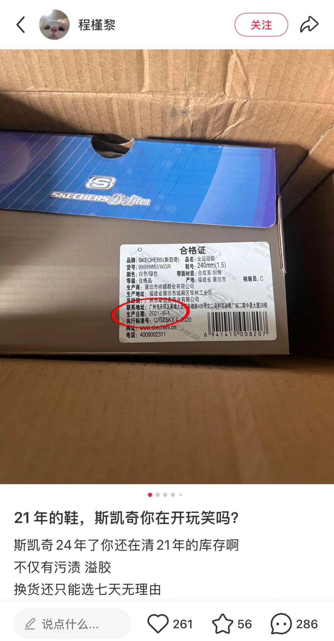2025年买的斯凯奇新鞋是2023年的库存 | 图源:小红书@攒钱买房(已获授权)