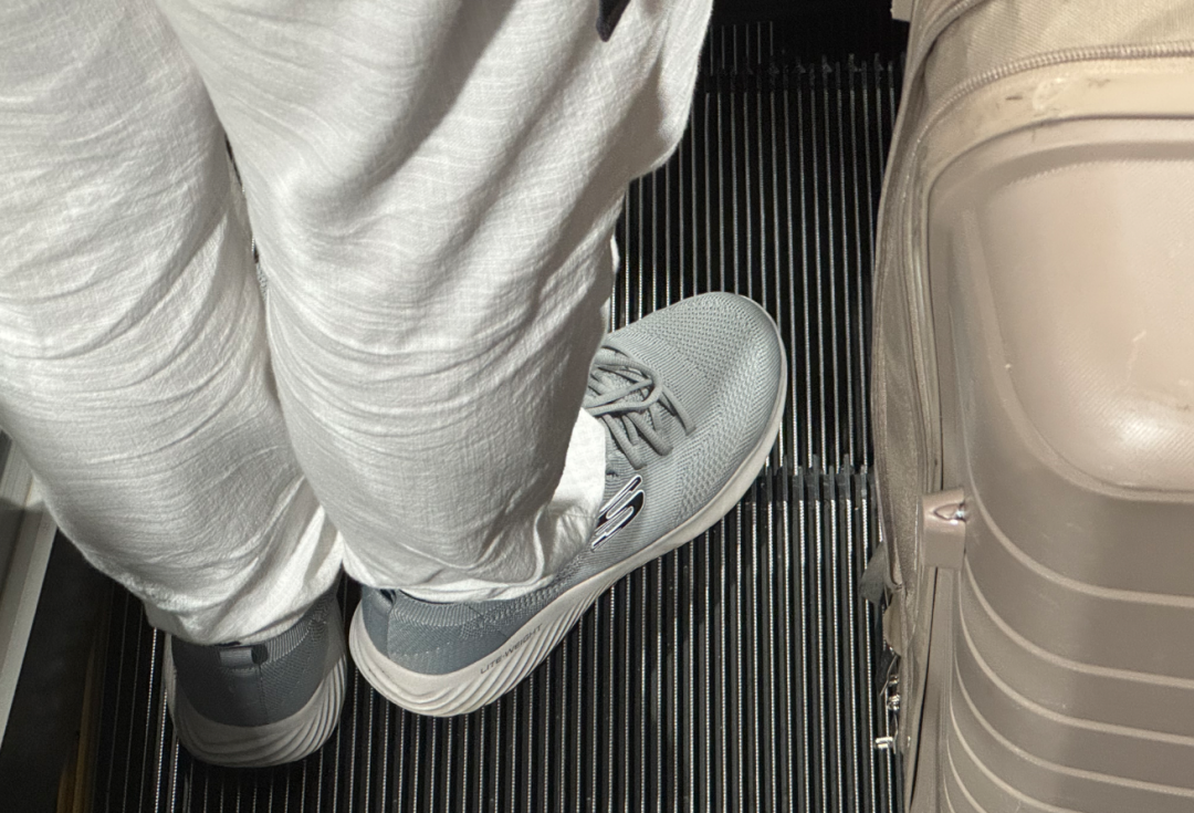 在机场自动扶梯上,王凯瞅着老爸脚上那双浅灰色,脑瓜子嗡嗡的。