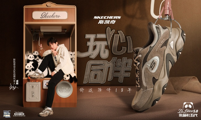 2013年后,因韩星街拍频繁上脚,引爆韩国市场,也吸引了整个亚洲的目光。2014年借韩流东风,斯凯奇将其正式定名D’Lites并深耕中国市场,2016年邀EXO代言D’Lites 2.0,“熊猫鞋” 昵称传开,迎来销量与口碑巅峰。2018至今,“熊猫鞋” 3.0、4.0、5.0迭代款持续推出,成为斯凯奇中国营收的一大来源。